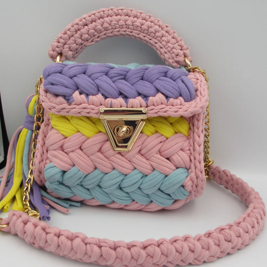Gwarti Hand Woven Multi-Color Crochet Bag - Handmade Boho Shoulder Bag - Unique Pink, Lilian Colorful Knitted Women's Bag, Luxury Designer Bag
