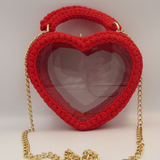 Gwarti Exquisite Handmade Heart Transparent Red Crochet Clutch