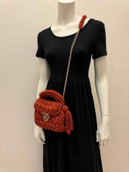 Gwarti Hand Woven Cinnamon Crochet Bag - Handmade Boho Shoulder Bag - Unique Multi-Color Women's Tote, Artisanal Crossbody Bag, Women Shoulder Bag