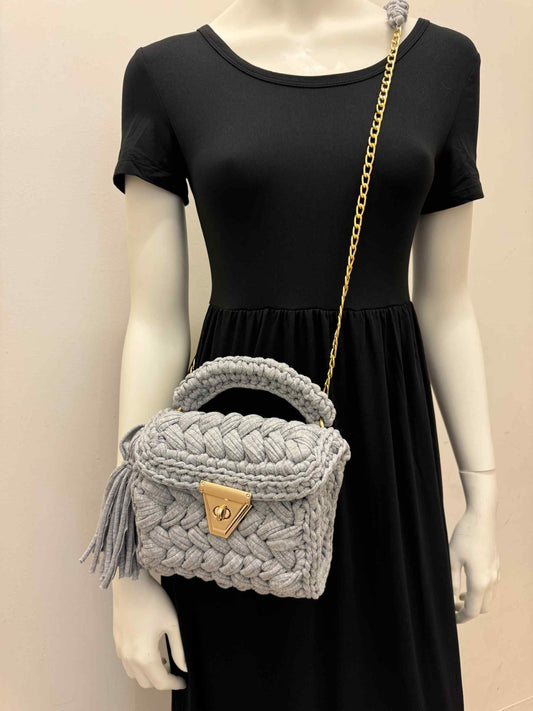 Gwarti Handmade Gray Knitted Bag - Hand Woven Boho Shoulder Bag - Unique Multi-Color Women's Tote, Artisanal Crossbody Bag, Women Shoulder Bag